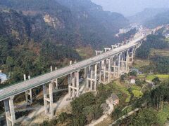 自贡网图:建设中的油房沟大桥自贡网讯(记者 李秋玥)成宜高速公路全长约157公里,采用双向六车道高速公路标准建设,设计速度120公里/小时,是目前我省设计标准最高的高速公路项目。19日,记者从成宜高速建设指挥部了解到,目前自贡荣县段四座隧道已实现三座双幅贯通,张家湾特长隧道预计四月中下旬荣县段半幅顺利贯通。据悉,位于荣县黑观音村连通铁厂互通大桥与大树坳隧道进口的油房沟大桥,其左线767.5米,右线803