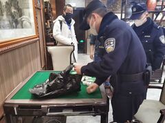 健康四川官微自贡网讯(记者 黄鸿)2月16日晚9时30分许,高新区相关部门在日常巡查时,发现位于都市风景小区的某沿街餐馆内有数人正在聚众打牌,执法人员当即对在场人员进行了宣传教育,并对麻将牌予以暂扣。当晚,高新区红旗街道、市市场监管局高新分局、高新公安分局执法人员开展了夜间联合巡查。执法人员巡查到都市风景小区时,发现某沿街餐馆内灯火通明,并不时传出麻将声,遂对其进行了现场检查。执法人员发现,该餐馆大门处有数人