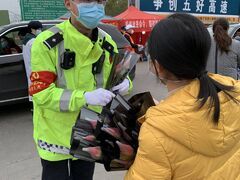 自贡网2月14日,自贡东高速路口的执勤人员收获了满满的温暖和感动——他们陆续收到了爱心人士、爱心团队送来的橘子、酒精、方便面、面包、牛奶、暖宝宝、鞋垫等物品。“他们都是心存大爱的无名英雄。”执勤人员这样说。疫情当前,如此团结一心的盐都人民,定能早日战胜病毒,取得抗疫胜利!(明月)