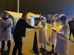 自贡网2月8日正值元宵佳节,贡井区和富顺县交通运输局的同志们向高速路口交通体温检测点上的交通执法、医务人员、交警同志送上了热腾腾的汤圆,向他们道去节日的问候,感谢他们在一线的坚守,同时嘱咐他们要做好防护。一线工作人员也纷纷表达了感谢,表示要把好入口关,严守交通防线。(市交通运输局)