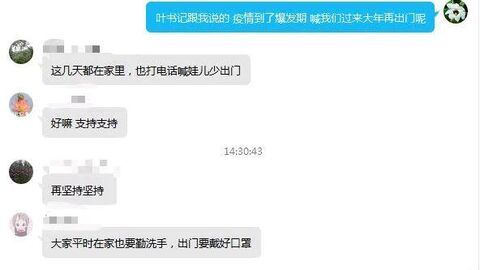 自贡网“陈书记, 您好, 我是陈家村走出去的一名农民的儿子,十多年前离家经商,现在国家有难, 全民防御疫情蔓延,我虽然人在外地,但每天都关注家乡的防疫情况,公司虽小,我为你们奋战在防疫一线的基层村组干部点赞,捐一点款给你们买口罩等物资保障安全,请接收!”“陈书记, 您好,我是陈家村二组的章国辉, 章瑞坦, 我们叔侄在外经商从事铝合金不绣钢行业,我天天通过我的家人了解家乡的防疫情况, 您们辛苦了,我们叔侄