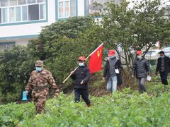 自贡网图:何志成(左二)走在防疫一线穿着雨靴、胸戴党徽、肩扛党旗、精神抖擞地挨家挨户发放宣传单并耐心地向村民讲解防疫知识。2月4日,记者在沿滩区沿滩镇詹井村3组,看到正在“抗疫”一线忙碌的81岁老党员何志成。危难时刻,更能考验初心和使命,更能凸显誓言的分量。面对来势汹汹的新冠肺炎疫情,每天在家看新闻联播的何志成坐不住了。“现在疫情这么严重,作为一名老党员,我要响应组织号召,回到战场参加战斗。”1月27日