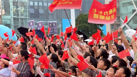 自贡网自贡融媒记者 兰艳 10月1日上午8时,一年一度的华商国际城“I LOVE CHINA”国庆升旗仪式公益活动在喷泉广场举行,今年已是第八届。尽管天空飘着小雨,现场仍聚集众多市民,共同为祖国母亲庆生。当天,仪仗队护卫着鲜艳的五星红旗缓缓步入活动现场,围观群众纷纷挥舞着国旗。而后,大家在庄严的国歌声中,注视着五星红旗冉冉升起。伴随《我和我的祖国》的悠扬旋律,大家共同放飞象征爱国情怀的红色心形气球。本次