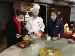 倒油、下锅、翻炒……2月3日11点50分,汇东天骄大酒店副厨师长彭辉平端出了热气腾腾的笋子肉片,一旁的同事赶紧切好水果,麻利地将两荤一素一汤打包装进塑料袋,来到“特殊客人”袁杰的房间门口,将盒饭放到取餐桌,轻轻敲门告知用餐时间到。 袁杰是自贡市邮政分公司邮政专车驾驶员。1月30日傍晚,他与同事一道从自贡出发前往湖北省仙桃市装运防疫物资,2月
