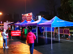 自贡网1月30日晚,自贡天空下着雨,在自贡市渝昆高速公路自贡站出口处,公安交警、卫生医疗等部门的工作人员正在现场开展疫情防控工作,还有众多共青团自贡市委组织的防疫应急青年志愿者,也在现场根据安排进行着防疫工作。 随着雨势的增大和气温降低,给了现场人员带来了不小的考验。就在此时,晚9时许,一辆电信服务车从市区方向驶来,停在了志愿服务点前。车上下来多名工作人员,快速抬下4顶帐篷,并招呼志愿者们