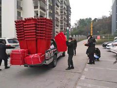 自贡网龙城国际发放现场 自贡网讯(记者 张才 黄鸿)随着新型冠状病毒感染肺炎疫情发展和个人防护意识增强,不论是医用无纺布口罩、雾霾防护口罩还是N95及以上型口罩,市区各大药店近日多已断货,就在这时候有人在龙城国际免费发放口罩的消息不胫而走。 此事连学苑街龙城社区党总支书记罗光兰都感到十分诧异。1月24日下午(大年三十),罗光兰带领社区工作人员在龙城国际小区发放新型冠状病毒感染肺炎防控