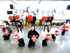 自贡网自贡网讯(记者 周姝 周航宇)1月7日,在市歌舞曲艺演艺有限责任公司的排练大厅内,男女群舞《幸福年年》的编导韩季不断以手势、眼神纠正演员们的动作、走位。“这是一支喜庆欢快的舞蹈,希望能为大家带去热闹的节日氛围,还特别加入了鼠元素,寓意金鼠闹春。”韩季说。 该节目由市歌舞曲艺演艺有限责任公司的15名演员完成,6名男演员手拿红灯笼,9名女演员手持可爱的生肖鼠,他们