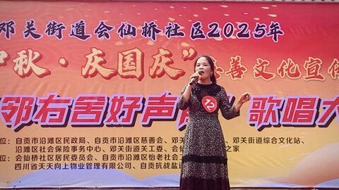 自贡网项丹 自贡融媒记者 周馨钰 9月29日,沿滩区会仙桥社区邓关亿城上海花园小广场上,一场热闹的“左邻右舍好声音”歌唱大赛拉开帷幕,大家欢欢喜喜迎中秋、庆国庆。活动由沿滩区民政局、沿滩区慈善会联合主办,会仙桥社区与沿滩区怡老社会工作服务中心共同承办,吸引23名选手登台竞技,百余位居民到场助威,现场歌声与笑声交织,勾勒出和谐喜庆的节日图景。 当天下午1时30分比赛开始,不同年龄段的选手陆续登场,各展风采