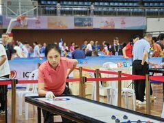 自贡网自贡网记者 幸维微 李婷 文/图 随着全民健身运动的深入发展,一项新兴运动——桌上冰壶球,以其独特的魅力,受到越来越多老年人的喜爱。5月29日,2024年四川省老年人桌上冰壶球比赛在自贡市檀木林体育馆内拉开序幕。桌上冰壶球是一项融合了竞技性、趣味性和健身性的新兴运动,其规则简单易懂,操作方便,适合各个年龄段的老年人参与。此次比赛吸引了全省各市(州)老体协省级行业协会的18支代表队近200名选手参赛