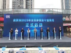 自贡网10月20日上午,以“中国医保 一生守护”为主题的自贡市2025年全民参保集中宣传月启动仪式,在自流井区梵华1939广场隆重举行。活动旨在进一步提升广大市民对医疗保障政策的知晓率和参保积极性,营造“人人参保、人人享有”的良好社会氛围。 活动由市医保局主办,自流井区医保局承办。现场气氛热烈,人头攒动。广场中央设立了多个宣传咨询台,来自医保、税务、银行等部门单位的工作人员耐心细致地为过往市民答疑解惑。