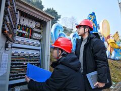 自贡网第三十二届自贡国际恐龙灯会将于1月下旬在自贡市中华彩灯大世界启幕,目前园区内正紧锣密鼓推进灯组焊接、组装等布展工作。1月13日,国网自贡供电公司员工主动上门开展专项用电安全检查服务,借助测绘完成地理电气接线图,精准定位配电室、一二级配电箱位置,厘清园区整体接线方式,同时对环网柜、备用发电机等关键供电设备进行全面细致排查,确保灯会用电安全可靠,为这场光影盛宴保驾护航。(袁丹 自贡融媒记者 蒋秀梅)