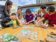 自贡融媒记者 李秋玥 文/图 10月18日下午,一场以“保护古树名木 传承生态文明”为主题的科普宣传活动在华商三期白鹿广场举行。活动通过展示一张张精美的古树名木照片、一个个精彩的古树名木故事,以及“玩转古树”打卡集章活动吸引大家。记者在现场看到,各游戏摊位前人潮涌动,不少是家庭组队参与,完成游戏并集齐印章,即可抽取古树名木文创礼品。“草木诗词送福来”“植物识别大侦探”“古树树龄为几何”“巧手拼古树
