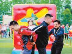 自贡融媒“咚咚咚!”开场鼓声如惊雷炸响 彩旗手飞奔入场 旗阵猎猎翻涌 犹如古战场的烽烟再起 球场中央 舞蹈演员化身一朵盛放的巨型花朵 “潺”旗在风中舒展飘扬 旋即 斧、钺、锤、棒在演员手中振臂低吼 一场叫作《潺舞》的史诗歌舞 为4月25日晚 “川超”德阳主场比赛拉开序幕 绿茵之上,文脉奔流 当《五丁开山》的舞者振臂低吼,将古蜀道开山先祖的雄风与坚毅鲜活地搬上数万名球迷面前时,台上台下共同完成了一场跨越千年