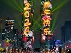 德阳市新闻传媒中心当新年的脚步悄然临近,一场属于全城的浪漫与惊喜如约而至。2025年12月31日晚,随着夜幕低垂,交子大道化身为一个巨大的光影剧场,以一场名为“成都 为你点亮”的沉浸式跨年盛宴,将科技、心愿与城市温情交织成一幅动人的画卷,陪伴市民游客共同敲响2026年的钟声。 晚上8点,伴随着全场热烈的欢呼与激昂的音乐,天府双塔52000平方米的巨幕联动交子之环、交子大道两侧建筑群楼的灯光,呈现出一场“以天为幕、以