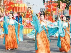 看度“咚咚锵,咚咚锵”……绵竹街头,一头“春牛”在人群簇拥下缓缓前行,牛背上的“春官”挥鞭喝道:“春来了!”2月10日,农历腊月二十三,2026年第二十五届绵竹年画节在万人空巷的民俗巡游中拉开帷幕。这一天,清代画师黄瑞鹄笔下的《迎春图》化作32个流动方阵、1400余名表演者的鲜活身影,在绵竹街头“活”了过来。 当天上午10时,绵竹回澜大道主干道两侧已被市民、游客围得水泄不通。手机镜头、专业相机齐刷刷