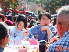 南充融媒“开席了……”2月25日(农历正月初九)中午12点,随着广汉市连山镇沙田村村宴厨师尹全寿掀开蒸笼的笼屉,白气瞬间升腾而起,裹挟着甜烧白的鲜香袭来,沙田村一年一度的传统民俗活动“九大碗”,就此热热闹闹开席。 主会场红堰广场与分会场九大碗广场中央,共166张圆桌整齐排布,现场超2000名食客围桌相聚,他们中有村民,也有来自成都、重庆等地的游客,欢声笑语中,共赴这场充满年味与期盼的约会。 碗里的“老味