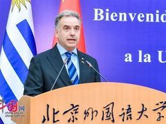新华社中国网2月5日讯(记者 郑海滨 白璐)4日上午,来华进行国事访问的乌拉圭总统亚曼杜·奥尔西访问了北京外国语大学,亲手为乌拉圭已故前总统何塞·穆希卡种植的象征中乌友谊的云杉培土,并为中乌友谊树新树牌揭幕。此访当中,奥尔西总统还发表了演讲,并与北外师生进行交流。 “13年前,穆希卡总统在这里种下了一棵云杉,今天,我们给它培土施肥,让它更加强壮、枝繁叶茂,就像我们对乌中关系所寄予的期望那样:有深厚的根基