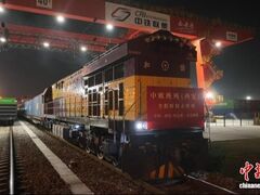 央视新闻客户端中新网西安11月23日电(记者 张远)22日晚,随着一声汽笛长鸣,一列满载45个集装箱电子产品、汽车配件、日用百货等货物的X8159次中欧班列从中国铁路西安局集团有限公司(简称“西安铁路局”)西安国际港站缓缓驶出,一路向西开往匈牙利布达佩斯。这标志首趟全程时刻表中欧班列(西安—布达佩斯)顺利开行,西安也成为全国首个实现3条全程时刻表中欧班列线路常态化开行的城市,形成每周“六去三回”的运营格局。 图