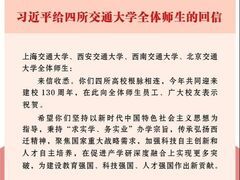 四川观察原标题:习近平给四所交通大学全体师生回信强调 传承弘扬西迁精神聚焦国家重大战略需求 为建设教育强国科技强国人才强国作出新贡献 近日,中共中央总书记、国家主席、中央军委主席习近平给上海交通大学、西安交通大学、西南交通大学、北京交通大学全体师生回信,对学校发展提出殷切期望。 习近平指出,你们四所高校根脉相连,今年共同迎来建校130周年,在此向全体师生员工、广大校友表示祝贺。 习近平强调,希望你们坚持以