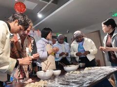 资阳观察除夕,是刻在中国人骨子里的归途坐标。当团圆成为所有人共同的期盼,在资阳国际数字游民中心,一群年轻人,正用一种新方式,拼凑出属于他们的“团圆”。 “馅儿再放多一点!”“福字往左边贴一点!”2月16日下午,阳光斜洒进资阳国际数字游民中心近未来中心的共享厨房,锅碗碰撞声、切菜声、欢笑声早已填满整个空间。三十多名身份各异的青年男女相聚在此——有设计师、情感博主、中医,也有来自德国、法国等国家的外国友人,