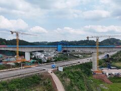 新华社川观新闻记者 寇敏芳 4月30日,绵遂资内铁路蒋家沟特大桥最后一个合龙节段——连续梁边跨顺利合龙,至此全桥实现合龙,为后续施工打通了关键通道。 蒋家沟特大桥是绵遂资内铁路绵遂段重难点工程,全长560.55米,桥梁的主跨“骑”在遂宁至大英快速通道之上,一边是建设中的铁路线,一边是繁忙的交通通道,施工如何既保证质量又最大限度减少对交通的影响,成为项目建设的关键难题。 蒋家沟特大桥边跨合龙。以标准化管理