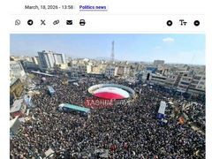 中新网中新网3月18日电 据伊朗塔斯尼姆通讯社报道,当地时间18日,伊朗最高国家安全委员会秘书阿里·拉里贾尼、巴斯基民兵组织指挥官苏莱曼尼的葬礼以及数十名海军人员的葬礼在德黑兰举行。 图片来源:伊朗媒体报道截图 报道称,阿里·拉里贾尼与其子于3月17日在德黑兰遭以色列空袭时遇难。苏莱曼尼也在德黑兰遭以色列战斗机空袭时遇难。 据此前报道,当地时间18日凌晨,伊朗方面证实最高国家安全委员会秘书阿里·拉里贾尼