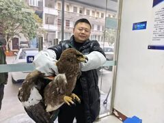 封面新闻12月15日下午4点20分,成都市龙泉山深处,中铁二十三局龙泉山生态保护修复暨国家储备林项目的产业工人梅胜福和邓凯,正穿行在张家岩水库附近的山林间。突然,空中一个挣扎的身影引起了他们的注意。 “它从天上歪歪扭扭、跌跌撞撞地落下来,看上去已经飞不动了。”常年与山林打交道的梅胜福,小心靠近这只从未见过的大型鸟类。他立即用手机软件识别,屏幕上的结果让他心头一紧:这很可能是一只珍贵的草原雕,国家一级保护