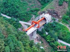 北京商报中新网成都10月9日电 (记者 刘忠俊)10月8日,四川省宜宾市筠连县董家湾中桥施工现场,最后一榀32米长、790吨重的箱梁稳稳落位,渝昆高铁宜宾至盐津南段(川滇段)384榀箱梁架设工作全部完成。这一关键节点的突破,为全线按期通车筑牢基础。 渝昆高铁川滇段最后一榀箱梁架设完成现场。中铁八局项目部供图据了解,作为国家“八纵八横”高铁网京昆通道的重要一环,渝昆高铁起于重庆西站,经川、黔、滇三省接入昆明