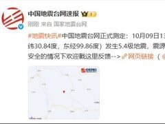 国家医保局中国地震台网正式测定:10月09日13时17分在四川甘孜州新龙县(北纬30.84度,东经99.86度)发生5.4级地震,震源深度10千米。 附近村镇:本次地震周边5公里内的村庄有古洛村、查贡、纳瓦柯、拿几来里马、瓦哥日,20公里内的乡镇有友谊乡、皮察乡。 周边县城:震中距新龙县45公里、距甘孜县88公里、距炉霍县99公里、距理塘县102公里、距白玉县107公里,距甘孜藏族自治州220公里,距成都市