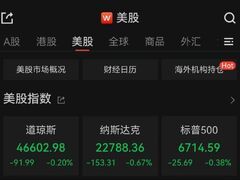 央视新闻周二,美股冲高回落并小幅收跌,纳指盘中一度突破23000点。 Wind截图 截至收盘,道指跌0.2%报46602.98点,标普500指数跌0.38%报6714.59点,纳指跌0.67%报22788.36点。 板块方面,大型科技股多数下跌,万得美国科技七巨头指数下跌0.81%。个股方面,特斯拉跌超4%,谷歌跌近2%,微软跌0.87%,脸书跌0.36%,英伟达跌0.27%,苹果跌0.08%,亚马逊涨0