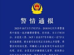央视网广州铁路公安10月7日通报,10月3日17时37分,D1819次列车乘警值乘中接报一起涉嫌猥亵警情。经初查,当日17时35分,余某某(男,34岁)在该车7号车厢对一名7岁女童实施猥亵,被女童母亲发现后当场制止并报警。乘警及时到场处置,将嫌疑人余某某移交车站派出所处理。目前,余某某因涉嫌猥亵儿童罪,被铁路公安机关依法刑事拘留,案件正在进一步侦办中。