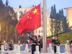 四川新闻网10月1日清晨,天空下起了小雨,但成都天府广场却洋溢着热烈的节日氛围,数万名市民和游客齐聚,冒雨观看升国旗仪式,庆祝新中国成立76周年。 随着嘹亮的国歌奏响,升旗手稳稳扬起国旗,五星红旗在庄严的注视中缓缓升起。伴随最后一个音符落下,旗帜定格于天空中,广场瞬间掌声雷动。 仪式结束后,人们并没有离去,而是自发地向国旗聚拢。大家围绕在国旗下,纷纷举起手机记录这一刻。人们的歌声回荡在广场间,有的高举红旗
