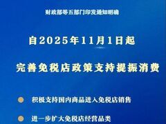 央视新闻客户端记者10月30日从财政部了解到,财政部、商务部、文化和旅游部、海关总署、税务总局印发通知,明确自2025年11月1日起完善免税店政策,旨在进一步发挥免税店政策支持提振消费的作用,引导海外消费回流,吸引外籍人员入境消费,促进免税商品零售业务健康有序发展。 通知从四方面完善了免税店政策。一是优化国内商品退(免)税政策管理,积极支持口岸出境免税店和市内免税店销售国产品。二是进一步扩大免税店经营品类,将更