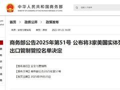 光明网商务部网站消息,根据《中华人民共和国出口管制法》和《中华人民共和国两用物项出口管制条例》等法律法规有关规定,为维护国家安全和利益,履行防扩散等国际义务,决定将亨廷顿·英格尔斯工业公司等3家美国实体列入出口管制管控名单(见附件),并采取以下措施: 一、禁止向上述3家美国实体出口两用物项;正在开展的相关出口活动应当立即停止。 二、特殊情况下确需出口的,出口经营者应当向商务部提出申请。 本公告自公布之日