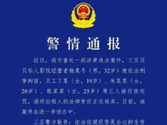 央视网12月21日,三亚警方发布警情通报,经营者杨某冬(男,32岁)被刑拘,3名女员工被行政处罚。