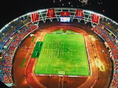 涪江观察时值乙巳岁暮,川超战鼓暂歇。蜀中绿茵豪杰,毕至攀西金沙江畔。 是夜,华灯映江,激光如星河倒泻。战歌骤起,二十一队旌旗猎猎,气贯长虹如赤焰巡行;啦啦劲舞翩跹似火凤振翅。绵阳俊才白举纲登台纵声,唱尽绿茵赛场热血肝胆。 此夜又见全兴名宿余东风、魏群、姚夏、邹侑根、刘斌重现江湖,与川超新锐共演五人蹴鞠。韩乔生、张力坐镇解说、妙语连珠。战至酣处,名宿队连破五城,终以五比二奏凯。赛后互赠信物,相视一笑间,廿