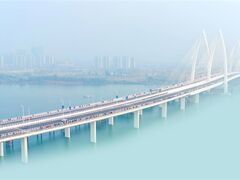 眉山市融媒体中心浩荡涪江穿城而过,见证无数浪奔潮涌。 “遂宁涪江六桥建成通车!”2025年11月24日,在遂宁涪江六桥通车仪式现场,市委书记严卫东的话音刚落,日景彩烟直冲云霄,围观群众掌声如潮——这是遂宁发展史上浓墨重彩的一笔,也是一座城市期待已久的狂欢。 2022年深秋动工,2025年孟冬落成。大桥西接老城区滨江北路,东连市河东新区东平北路,遂宁四十年的奋发图强、逐梦征程,具象地呈现于横跨两岸的飞虹。 从最早的