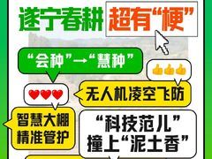 四川观察春回大地,万象“耕”新 当“科技范儿”撞上“泥土香” 遂宁的田野藏着 数不尽的趣味“梗” 也写满了“会种”到“慧种”的蜕变 无人机凌空飞防 智慧大棚精准管护 工厂化育秧提速增效 智能农机驰骋田间 …… 一组海报 带你解锁春日田园的“隐藏剧情”~