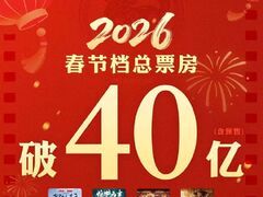 央视新闻据猫眼专业版数据,2026年春节档档期总票房(含预售)破40亿,《飞驰人生3》《惊蛰无声》《熊出没·年年有熊》分列前三位。