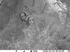 四川新闻网近日 大熊猫国家公园大邑片区的 红外相机再次“立功” 捕捉到两只野生大熊猫 在林间出没的珍贵画面 1月24日凌晨 一只大熊猫悠悠地出现在镜头里 它努力地把胖乎乎的身躯往树干后藏 坐在大树下自在地进食 小脑袋随着啃竹子的节奏一动一动 1月24日18时 两只大熊猫迈着内八字慢悠悠前行 一步步走向密林深处 红外相机悄悄定格下了 这一治愈出行的画面 1月25日一早 一只“滚滚”拖着胖乎乎的身子 一颤一颤