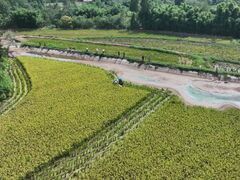 德阳市新闻传媒中心45岁的李能齐没想到,自己不过是打一场谷子,竟引来了众人的围观。 正在收割稻谷。 9月15日,晴空万里。资阳市雁江区小院镇桅子湾村一片金黄。李能齐头戴遮阳伞,熟练地操控着收割机从田边起步,一圈圈、一行行有序推进,饱满的稻谷被尽数收入袋中,在稻田里留下整齐的轨迹。 作为桅子湾村的女婿,李能齐早些年在西藏务工,2019年随妻子回雁江创业,如今流转了150亩土地搞“稻虾共作”。 “李老板,歇哈!让我们看