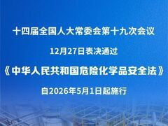 新华社十四届全国人大常委会第十九次会议12月27日表决通过《中华人民共和国危险化学品安全法》,自2026年5月1日起施行。 危险化学品安全法共10章127条,包括总则、规划布局、生产和储存安全、使用安全、经营安全、运输安全、危险化学品登记、事故应急救援、法律责任、附则。 这部法律的出台旨在加强危险化学品的安全管理,预防和减少危险化学品事故,保障人民群众身体健康、生命安全和财产安全,保护生态环境。