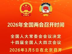 新华社全国人大常委会会议12月27日表决通过了关于召开十四届全国人大四次会议的决定。根据决定,十四届全国人大四次会议于2026年3月5日在北京召开。 政协第十四届全国委员会日前召开主席会议,建议全国政协十四届四次会议于2026年3月4日在北京召开。