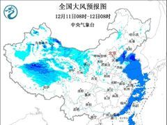 央视新闻客户端中新网12月11日电 据中央气象台网站消息,中央气象台12月11日继续发布大风、寒潮蓝色双预警。 中央气象台12月11日06时继续发布大风蓝色预警: 预计,12月11日08时至12日08时,新疆北疆东部和南疆盆地、西北地区中东部、内蒙古西部、华北西部、山东半岛、西藏中北部等地部分地区有5~7级、阵风8~9级的大风,其中,新疆山口地区阵风可达10~11级;渤海、渤海海峡、黄海大部海域、东海大部海域、