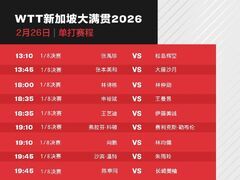 央视新闻客户端2026年WTT新加坡大满贯精彩继续,经过4个正赛日的争夺,孙颖莎、王曼昱、王楚钦等11名国乒选手晋级单打16强。26日将进行男女单打1/8决赛及双打半决赛,其中将上演3场“中日对决”,具体赛程如下: 🏓🏓🏓 一起为国乒选手加油!