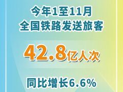 新华社记者今天从国铁集团获悉,今年1至11月,全国铁路发送旅客42.8亿人次,同比增长6.6%,创历史同期新高。 今年以来,国铁集团持续加大客运能力供给,1至11月,全国铁路日均安排开行旅客列车11258列,同比增长7.1%;加强跨境客运组织,稳定开行中越、中俄、中蒙国际列车,广深港高铁、中老铁路分别发送跨境旅客2894万人次、24.4万人次,推动跨境游升温,有效助力人员交流和商贸往来。 运力增加的同时