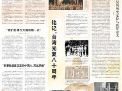 央视网一九四五年十月二十五日,中国战区台湾省受降仪式在台北公会堂(今为中山堂)举行。中国人民抗日战争纪念馆供图 1939年2月,台湾义勇队成立后,转战于浙闽一带,主要从事“对敌政治、义务诊疗、生产报国、宣慰军民”等工作。图为活跃在浙江金华的台湾义勇队。中国人民抗日战争纪念馆供图 《新华日报》多次发表社论,呼吁台湾人民参加抗战、早日收复台湾。图为1943年6月17日《新华日报》社论《台湾,回到祖国来!》。