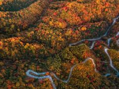 天府新视界“巴山一夜风,木叶映天红。” 在川陕交界处的巴中市南江县北部,坐落着一片面积达680平方公里的红叶群落。这里,就是光雾山旅游景区。 每逢秋季,一场红色的魔法秀便在此上演。40余种变色树种次第“燃”遍层峦,织就“亚洲最长红地毯”。色彩层次之丰,如天工调色;景观规模之宏,浩荡磅礴;观赏周期之长,宛若时光在此停驻。 俯瞰光雾山红叶 图据巴中市文旅集团【一】 巴中市档案馆里,一张光雾山秋景的珍藏照片,道尽