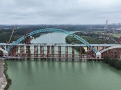 川观新闻记者 寇敏芳 吴聃 摄影报道 11月10日,在12台600吨连续千斤顶3小时作业后,成渝中线高铁控制性工程沱江特大桥主梁顺利合龙,实现全桥合龙。预计2027年底,成渝中线高铁将建成通车,最高运营时速有望达到400公里,将成为全球最快高铁,届时从成都至重庆将实现50分钟通达。 成渝中线高铁沱江特大桥沱江特大桥位于四川省简阳市石钟镇,全长1252米,主桥上部结构为主跨320米中承式钢管混凝土拱