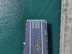 央视体育11月5日,福建舰入列! 福建舰是我国第一艘电磁弹射型航空母舰,也是我国第三艘航空母舰,舷号为“18”。 现场还有哪些细节?一组动图带你看。 福建舰踏海而立、满旗高悬 清晰看到福建舰上的舷号“18” 山东舰与福建舰伏波相伴 飞行甲板上有4道阻拦索、3个弹射起飞位 歼-35、歼-15T、空警-600等新型舰载机依次停放 超近距离看现场: 甲板上空载的动子如离弦之箭弹向舰艏 官兵在飞行甲板和码头整齐列